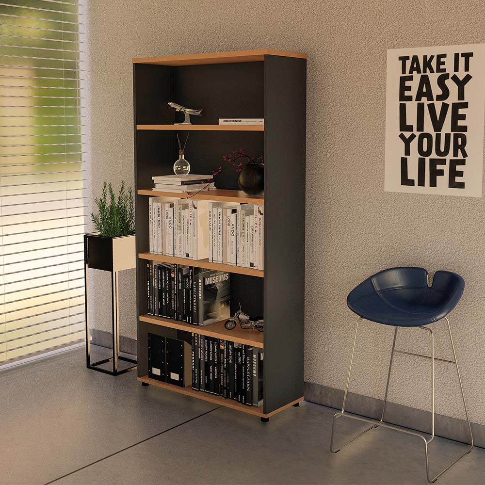 Wonder Bookcase: Beech and Charcoal Office Storage Unit with Adjustable Shelves for Flexible Organisation