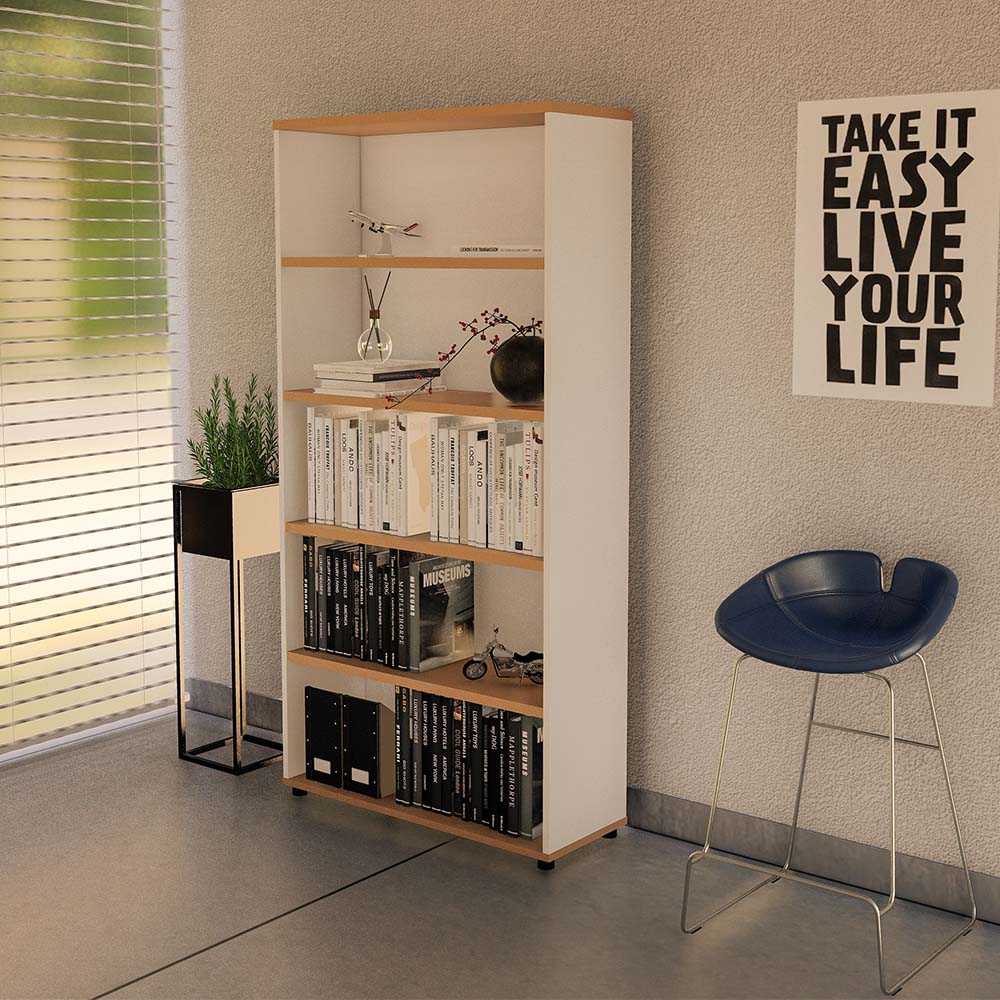 Wonder Bookcase: Beech and White Office Storage Unit with Adjustable Shelves for Customisable Organisation
