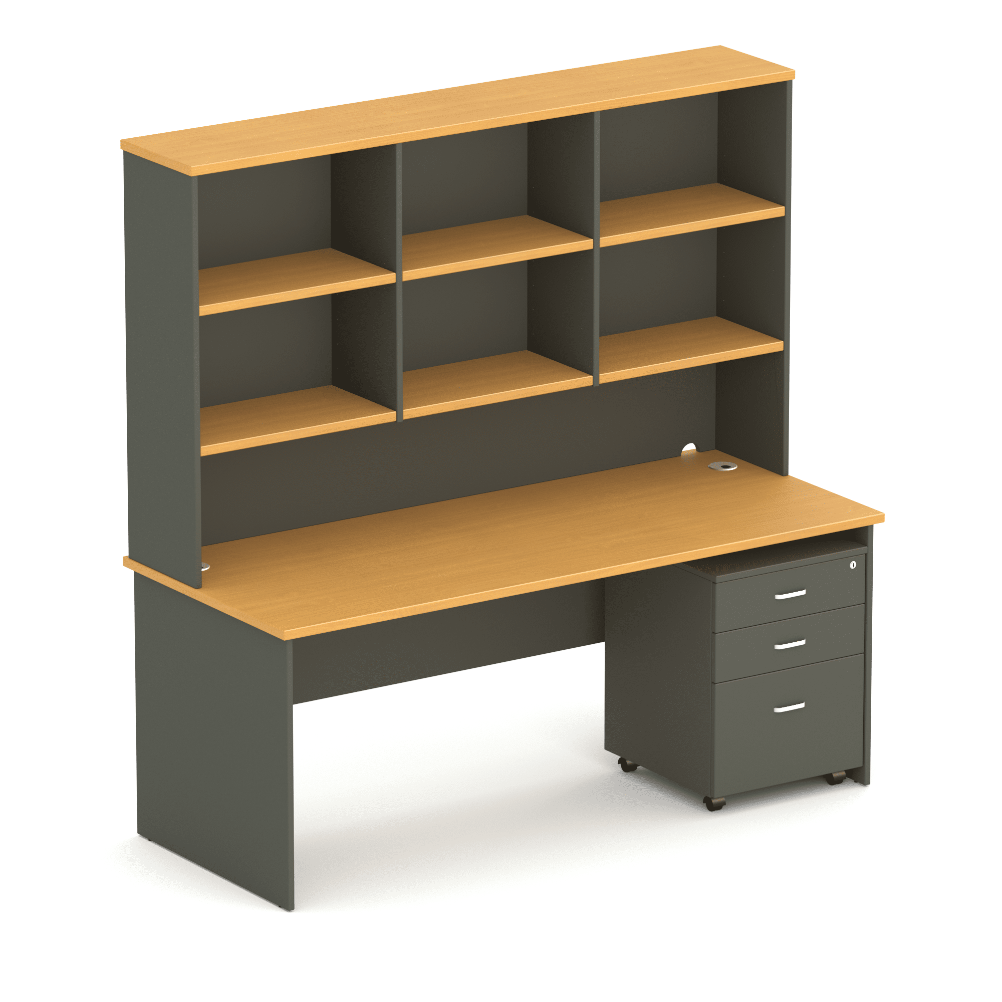 Wonder Desk & Hutch: Spacious Beech and Charcoal Office Desk with Integrated Hutch for Storage and Organisation