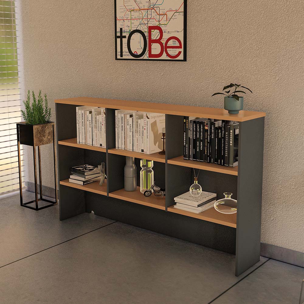 Wonder Overhead Hutch: Beech and Charcoal Office Storage with Adjustable Shelves for Versatile Organisation