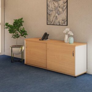 Wonder Sliding Door Credenza: Beech and White Storage with Sleek Sliding Doors for Organised Workspaces