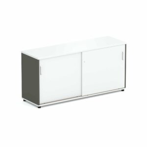 Wonder Sliding Door Credenza: White and Charcoal Storage with Sliding Doors